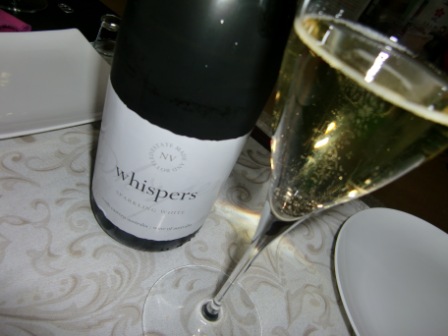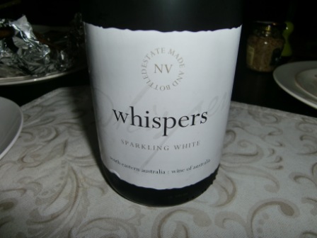 この晩御飯の飲み物は、辛口 ウィスパーズ スパークリング ホワイト