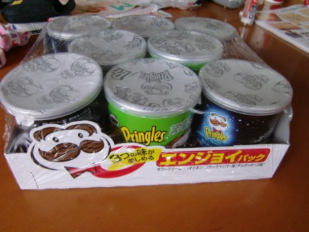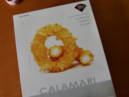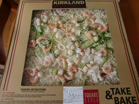 食材は、イカリングのフライ・お約束のシーフードピザ・マカダミアナッツのガーリック・オリーブオイル・お菓子・シャケフレーク・こんにゃくラーメンです。