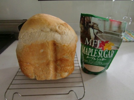 小麦粉もいろいろ変えています。今回のは、グリーンコープの小麦粉北海道産で、お手頃です。膨らみもいいですよ。砂糖は、メイプルシロップのお砂糖です。ほのかにメイプルシロップの香りがして、さらに厚切り・・・・・・やばいです。